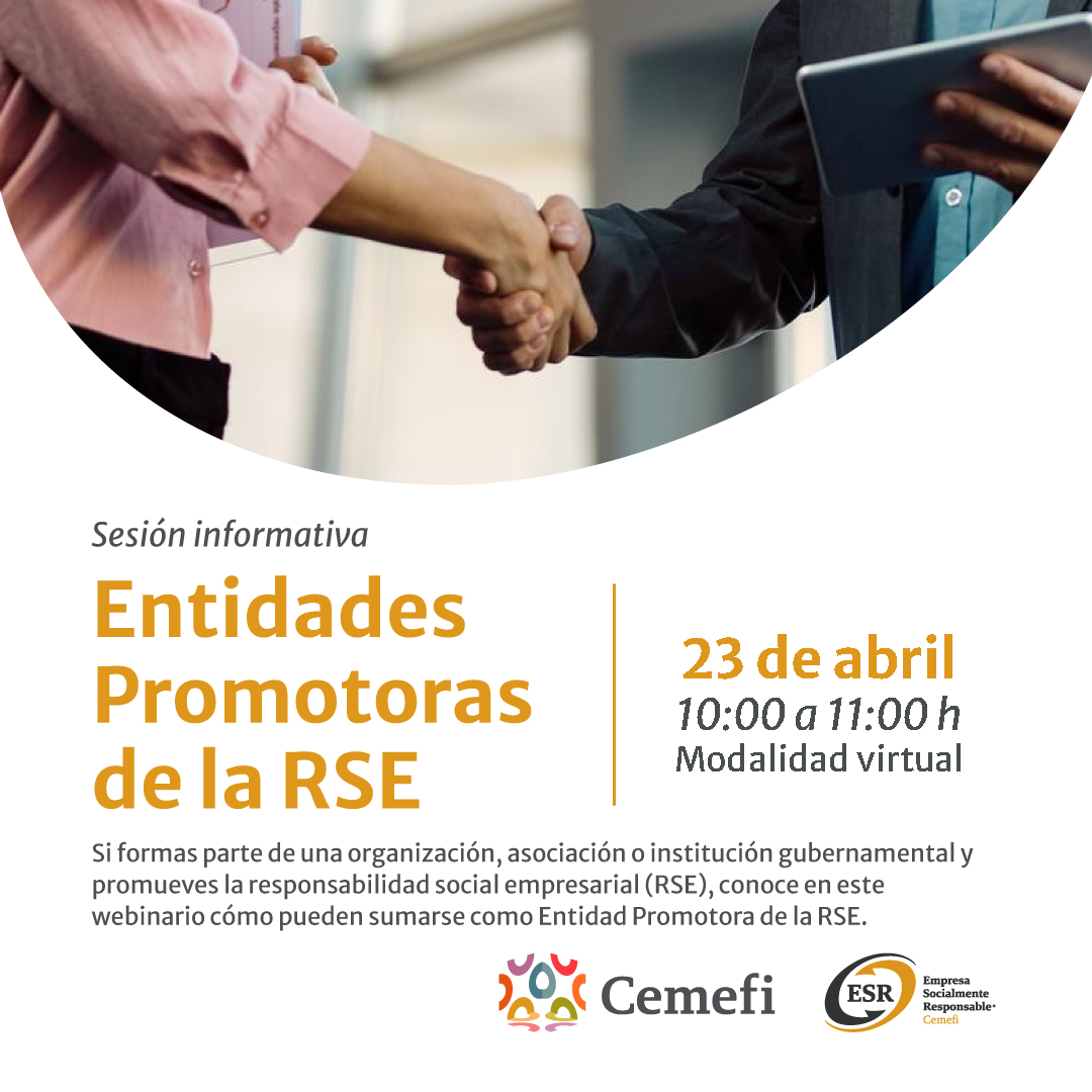 Si formas parte de una organización, asociación o institución gubernamental y promueves la responsabilidad social empresarial (RSE), conoce en este webinario de qué forma puedes sumarte como una Entidad Promotora de la RSE.