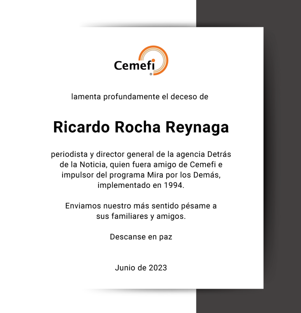 En Cemefi lamentamos profundamente el deceso de Daniel Baños Samblancat padre de Mariana Baños Reynaud, integrante de nuestro Consejo Consultivo, fundadora y presidenta de Fundación Origen, A.C.