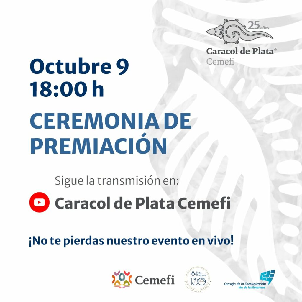 El próximo 9 de octubre a las 18:00 horas (tiempo del centro de México) se llevará a cabo la ceremonia de premiación 2025 del Reconocimiento Iberoamericano Caracol de Plata®, que celebra 25 años impulsando la comunicación con causa en Iberoamérica.