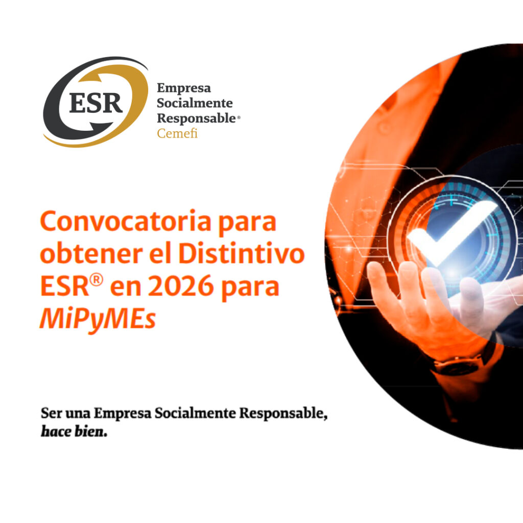Cemefi invita a las micro, pequeñas y medianas empresas (MiPyMEs) a participar en la convocatoria para obtener el Distintivo ESR® en 2026, una oportunidad para evaluar y comparar el nivel de desarrollo de sus prácticas de responsabilidad social empresarial (RSE) en relación con otras empresas de su industria.