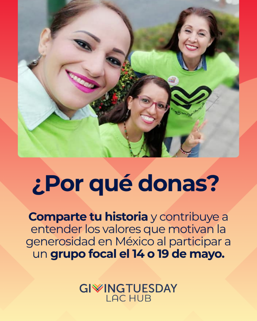 Con el objetivo de comprender mejor qué motiva a las personas a donar en México, la iniciativa GivingTuesday invita a participar en un grupo focal dirigido a personas que hayan realizado donaciones a organizaciones sin fines de lucro durante el último año.