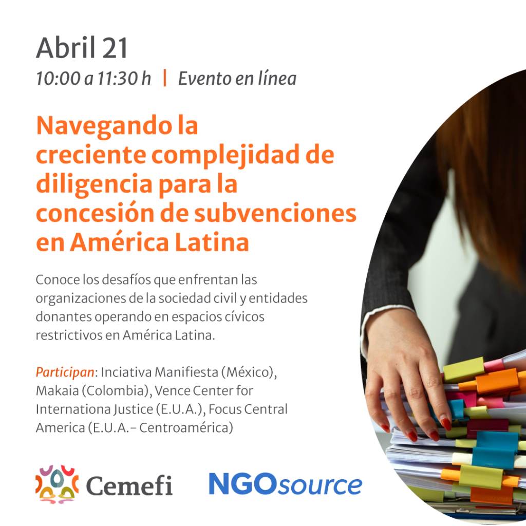 Con el objetivo de analizar esta realidad, se llevará a cabo el webinario “Navegando la creciente complejidad de la debida diligencia en la concesión de subvenciones en América Latina”, un espacio que permitirá conocer cómo han evolucionado los requisitos de debida diligencia y cuál es su impacto en los procesos de financiamiento para iniciativas sociales en la región.