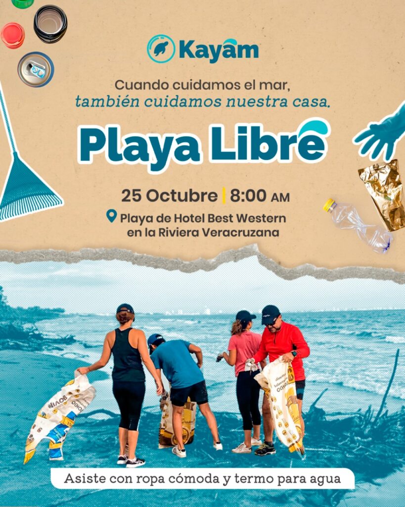La iniciativa Playa Libre se lleva a cabo el último sábado de cada mes. En esta ocasión, la brigada de limpieza se llevará a cabo en las playas del Hotel Best Western en la Riviera Veracruzana, este sábado 25 de octubre de 2025 a las 8:00 horas (ver mapa)