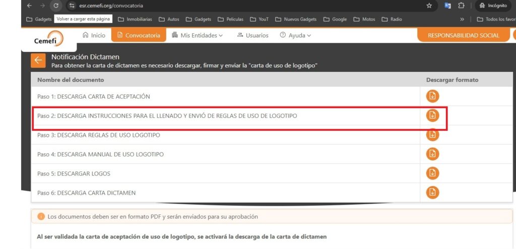 8⃣ Una vez que Cemefi revise y confirme la Información, la empresa podrá descargar el logotipo ESR y la carta dictamen las veces que considere necesario.