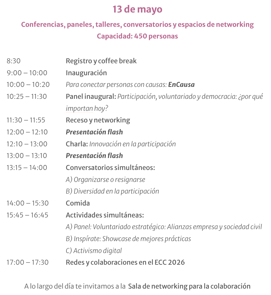 El Encuentro de Colaboración Ciudadana (ECC) celebra su cuarta edición en el marco del Año Internacional de los Voluntarios para el Desarrollo Sostenible. “De la inspiración a la acción”, es el tema del próximo encuentro a celebrarse en la Universidad Iberoamericana Ciudad de México, los días 12 y 13 de mayo.